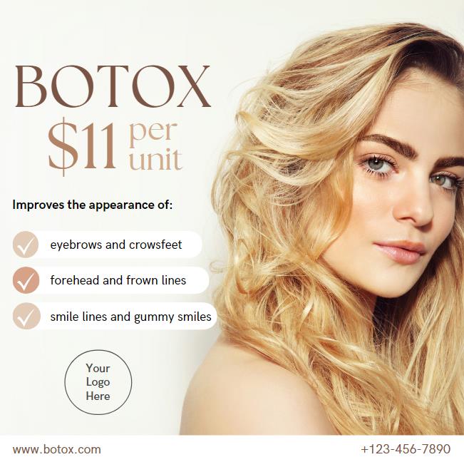 Beautiful warm neutral ad design with special offer pricing and Botox benefits
