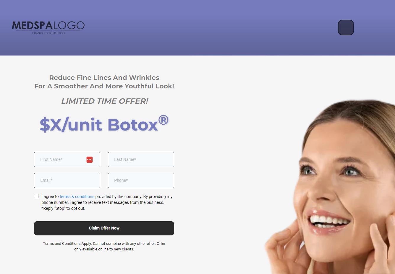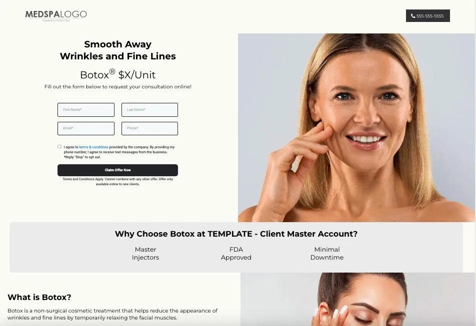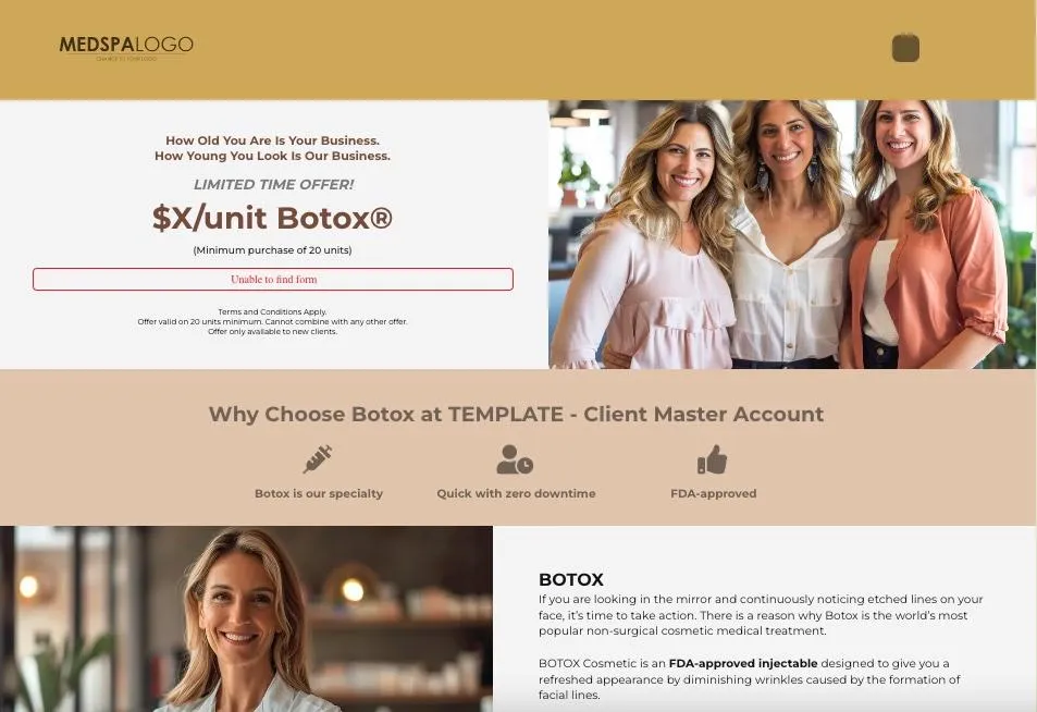 Beautiful and neutral funnel design pre-loaded with information about Botox and ready to be customized.