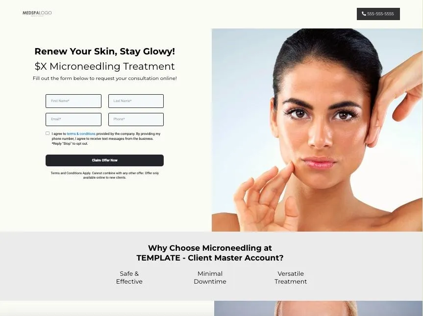 Clean design showcasing discounted microneedling.