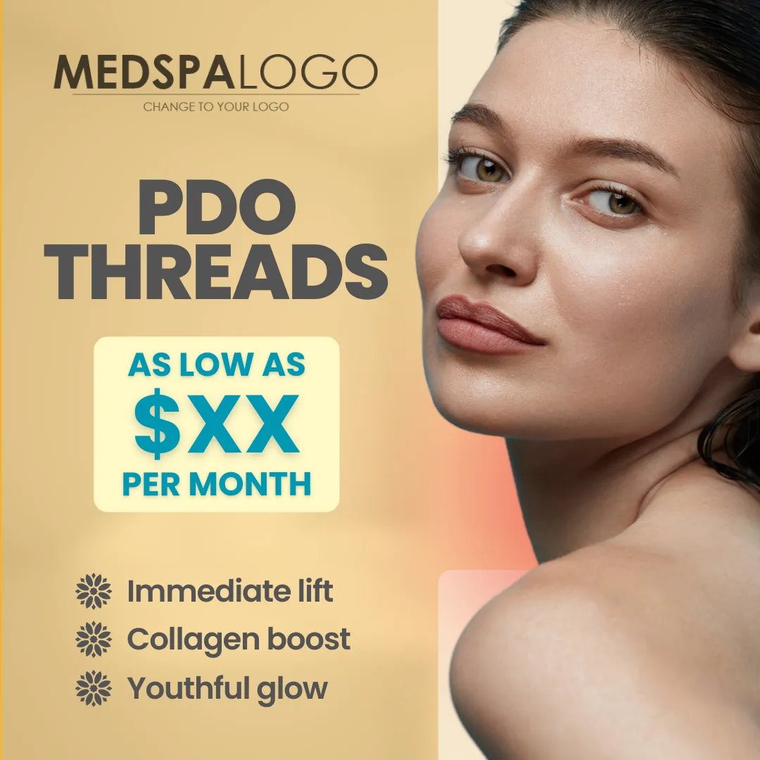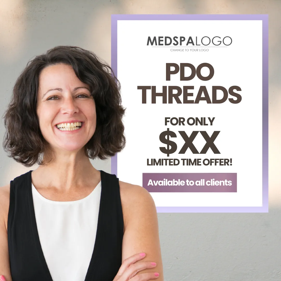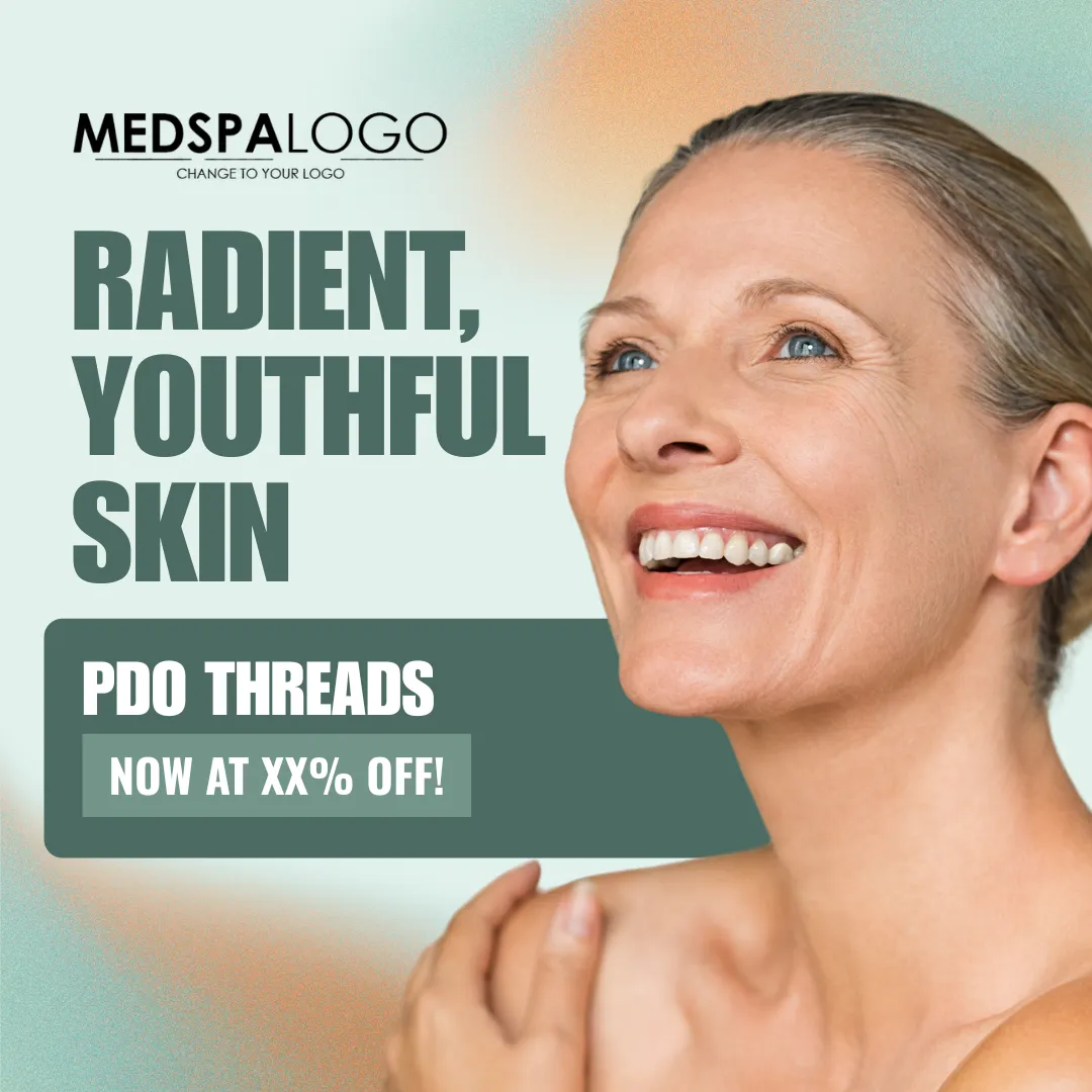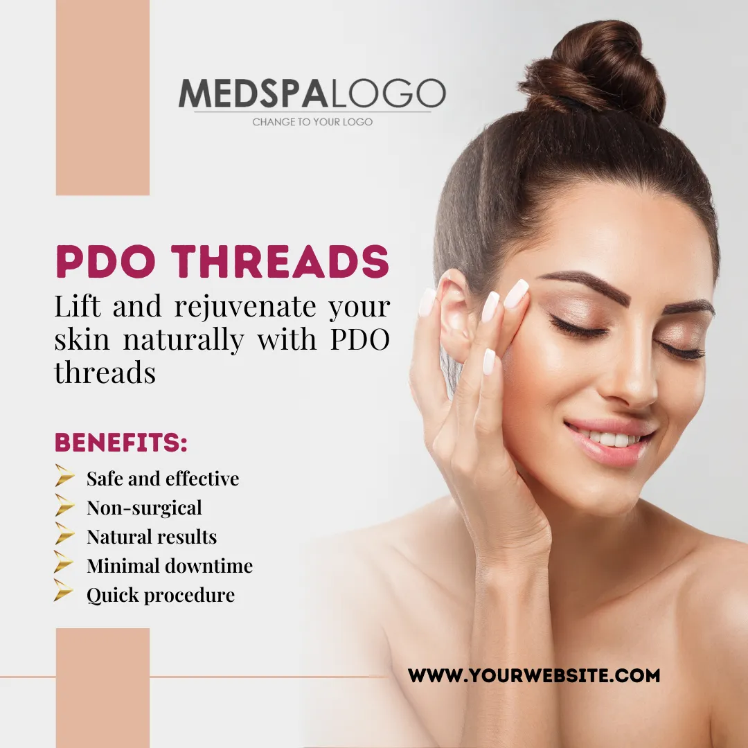 Clean design showcasing youthful skin with PDO Threads.