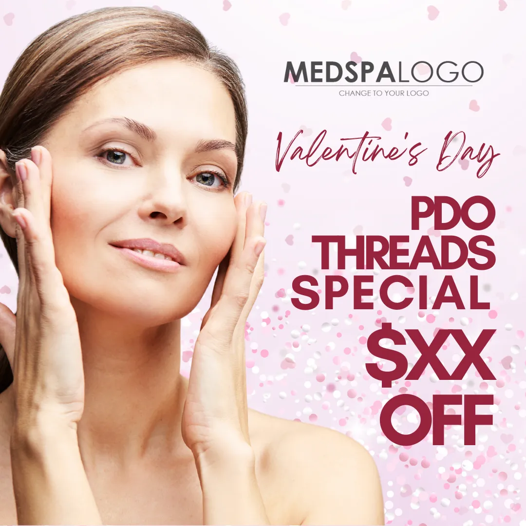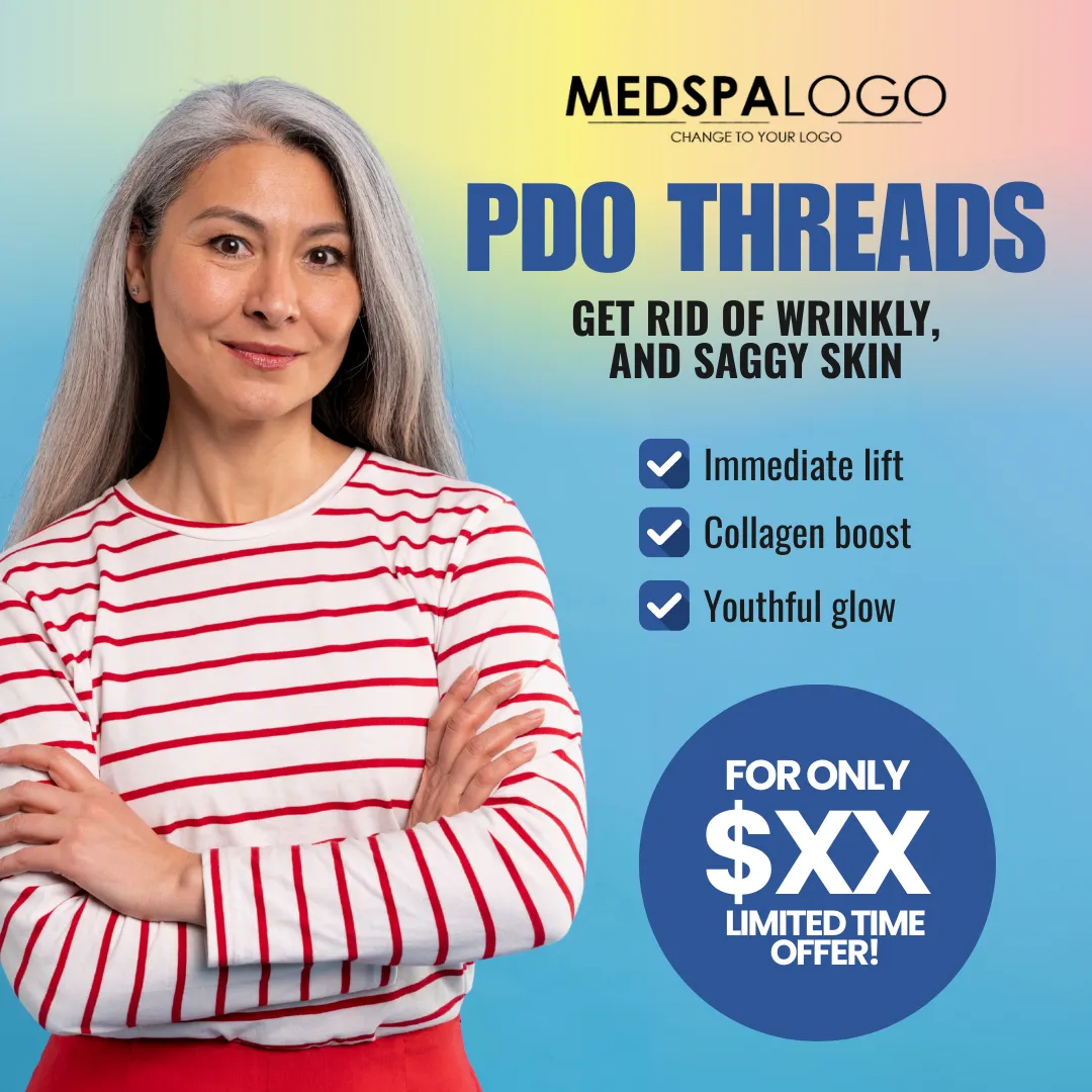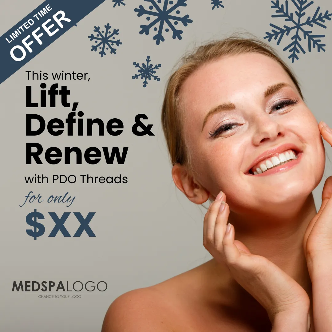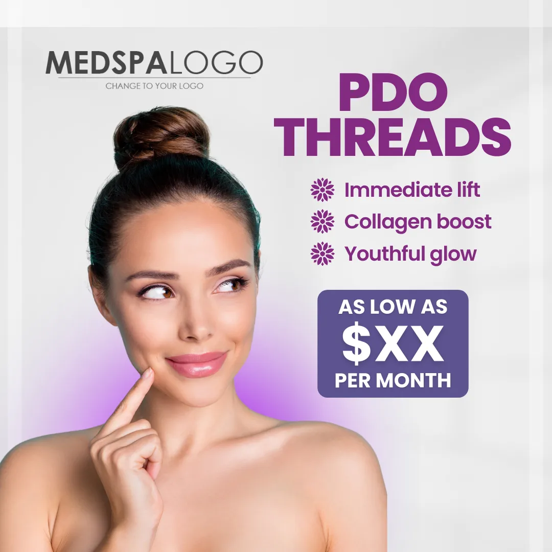 Clean design showcasing youthful skin with PDO Threads.