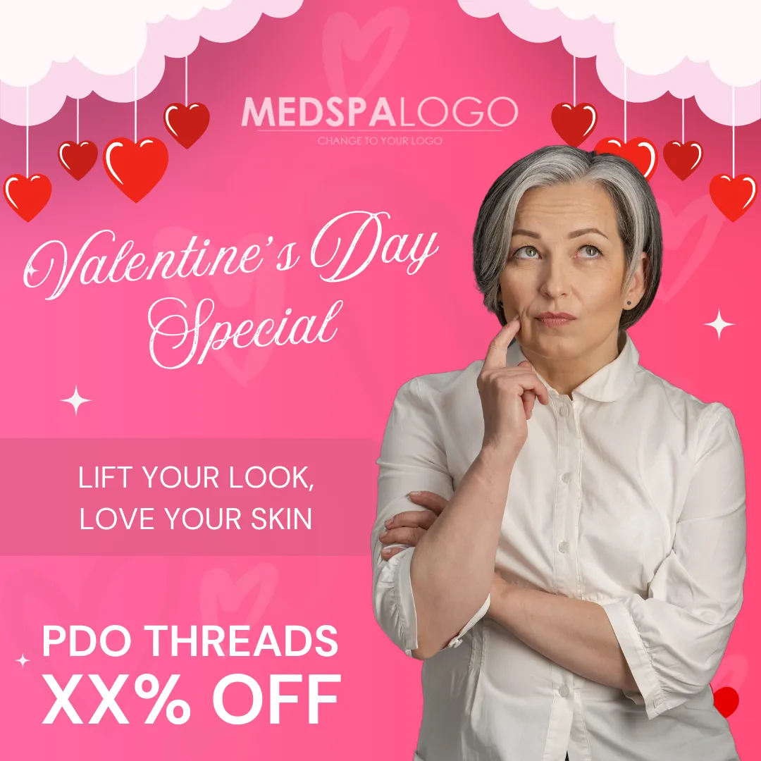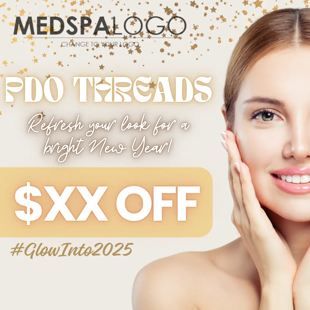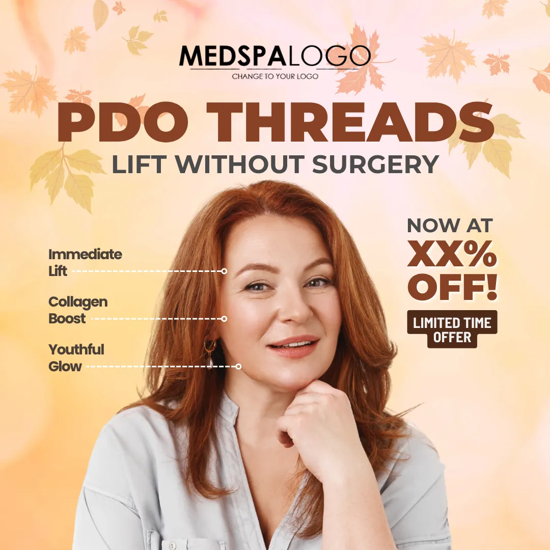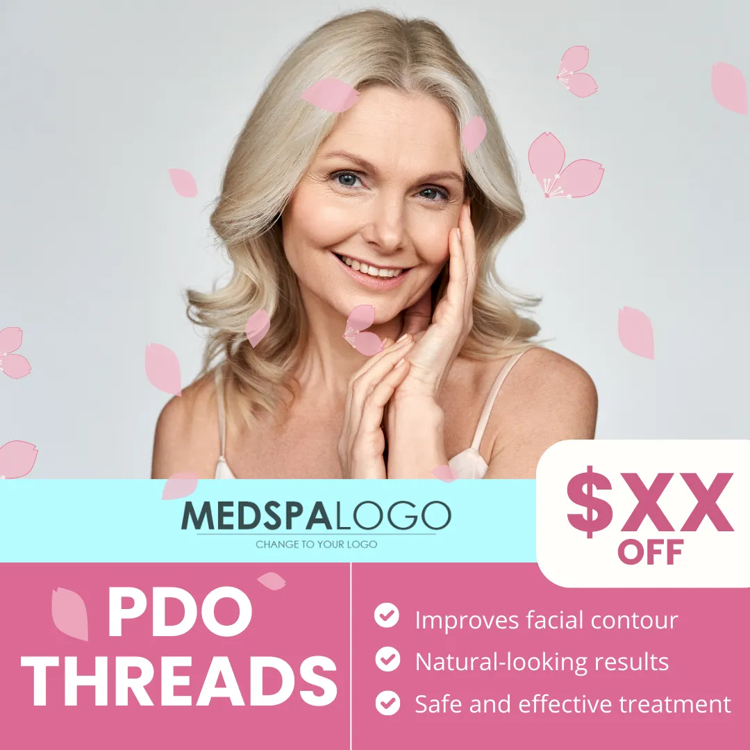 Clean design showcasing youthful skin with PDO Threads.
