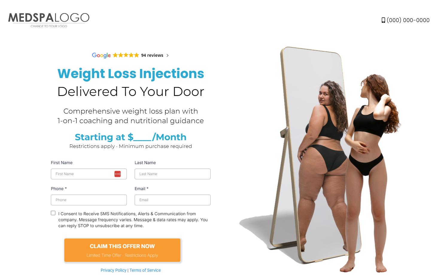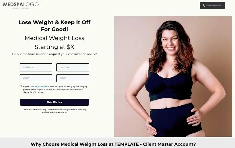 Clear and sleek funnel design pre-loaded with information about weight loss and ready to be customized according to branding preference.
